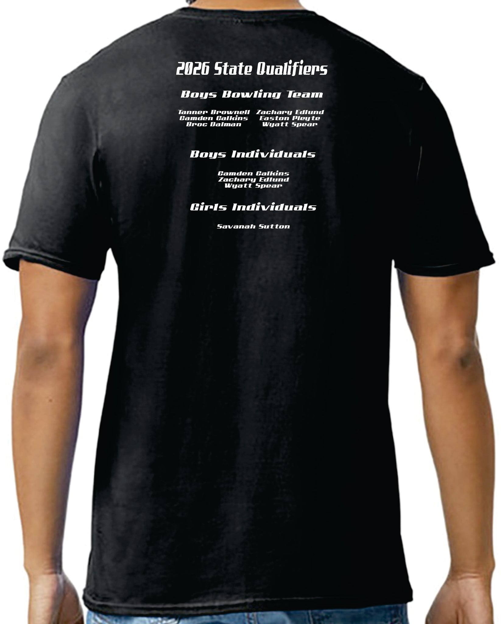 Black Gildan softstyle t-shirt with design screen printed to the front and back