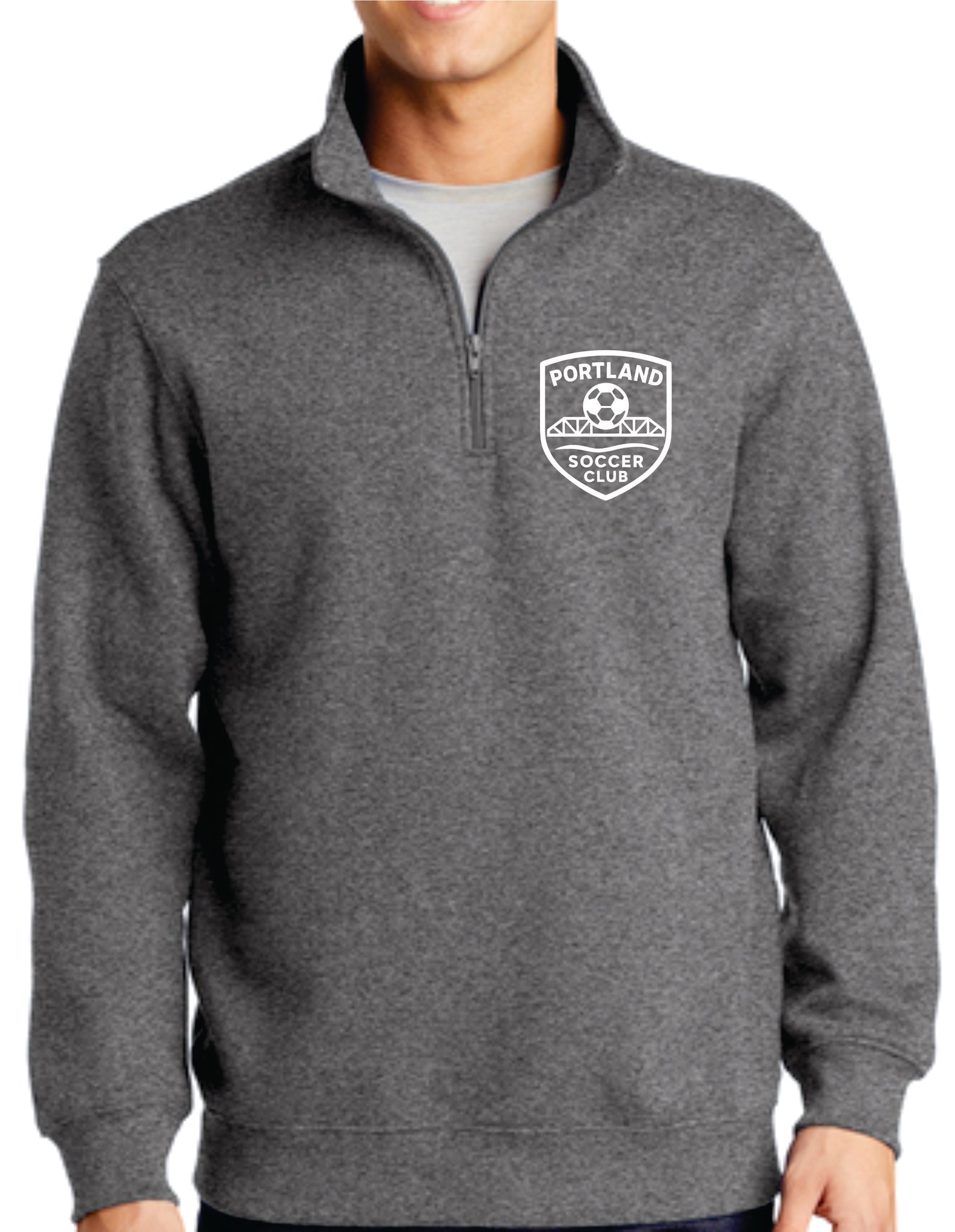 Sport-Tek fleece 1/4 zip with design embroidered to the left chest.