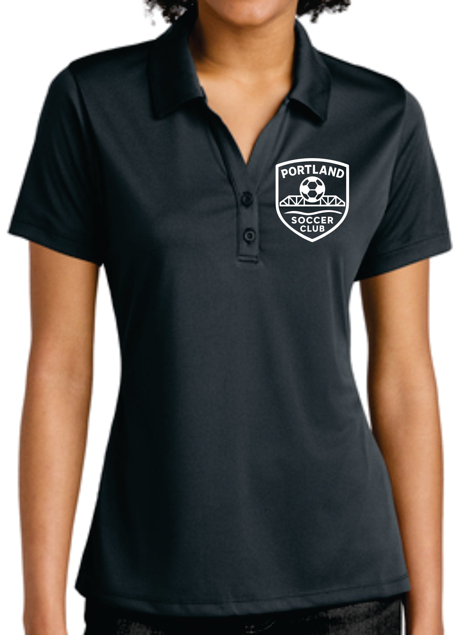 Sport-Tek ladies performance polo with design embroidered to the left chest.